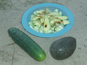 Avocado-GurkensalatHier in Mexiko sind die Avocados heimisch und entsprechend günstig zu bekommen. Eine Delikatesse, die wir uns in Deutschland nicht oft gegönnt haben. Dieses energiespendende Gemüse kann man natürlich einfach aufs Brot schmieren, jedoch eine sehr schnell bereitete Beilage kann man mit einer kleinen Schlangengurke und etwas Basamico-Essig zubereiten. Der ist zwar etwas schwieriger zu bekommen, aber die Mühe Wert! |