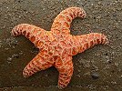 Seesterne beobachten, die sonst von Wellen umgeben sind. Die aufgehende Sonne schickt ihre ersten Strahlen