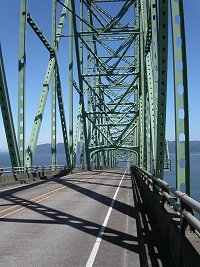 Astoria hineinführt. Die Fahrbahn verläuft die meiste Zeit flach über dem Wasser entlang, bevor