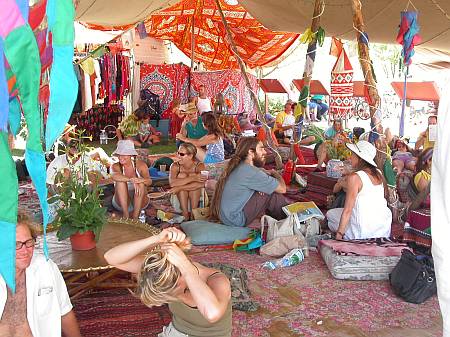Regenbögen, Reggaefarben und Batikstoffe kündigten schon von ferne an, wer hier