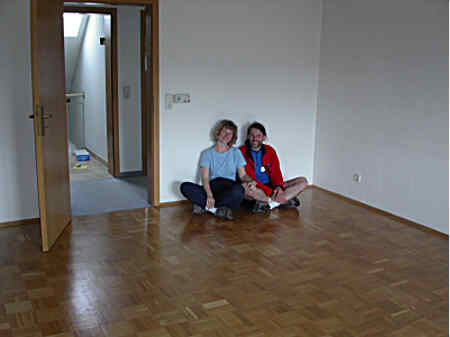 ![]() Im Wohnzimmer unserer ausgeräumten Wohnung, wenige Minuten vor der Abfahrt. |