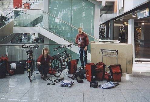 ![]() Verpacken der Ausrüstung und der Räder am Flughafen Düsseldorf am 11. Mai 2003 |
